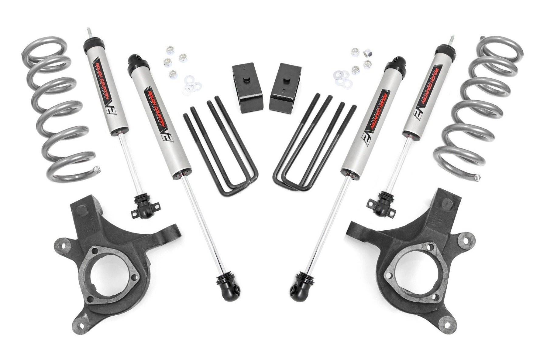 Go Bigger, Go Bolder: Take your truck off the beaten path with Rough Country's 4.5" Suspension Lift for 1999-2006 2WD GM 1500 models. This all-inclusive lift kit gives you the aggressive stance and added clearance you need to dominate any trail with enough lift to run up to 33" tires.Boosted Clearance Meets Balanced Stance: Front lifted coil springs and rear lift blocks combine to deliver 4.5" of added height, boosting ground clearance and eliminating factory rake for a level, commanding look. Whether on the highway or hitting rugged trails, your truck stays balanced and ready for more.Ride Quality You Can Feel: This kit includes front and rear N3 shock absorbers featuring 10-stage velocity-sensitive valving. Specifically tuned for GM 1500 models, these nitrogen-charged shocks maintain a smooth, stock-like ride on pavement while offering responsive performance off-road.Customizable Shock Options: Want to fine-tune your ride? Upgrade to V2 Monotube or M1 Monotube shocks for even greater performance and control because the power to customize your ride is in your hands.DIY-Friendly Installation: Enjoy a 100% bolt-on installation that requires no cutting or drilling. This kit is perfect for weekend wrenchers and DIYers alike, with only minor trimming of the fender shroud needed for select tire sizes.Affordable Performance: Rough Country delivers big lift performance at an industry-leading low price. Tackle terrain with confidence and transform your truck into the capable, trail-ready beast it was meant to be.