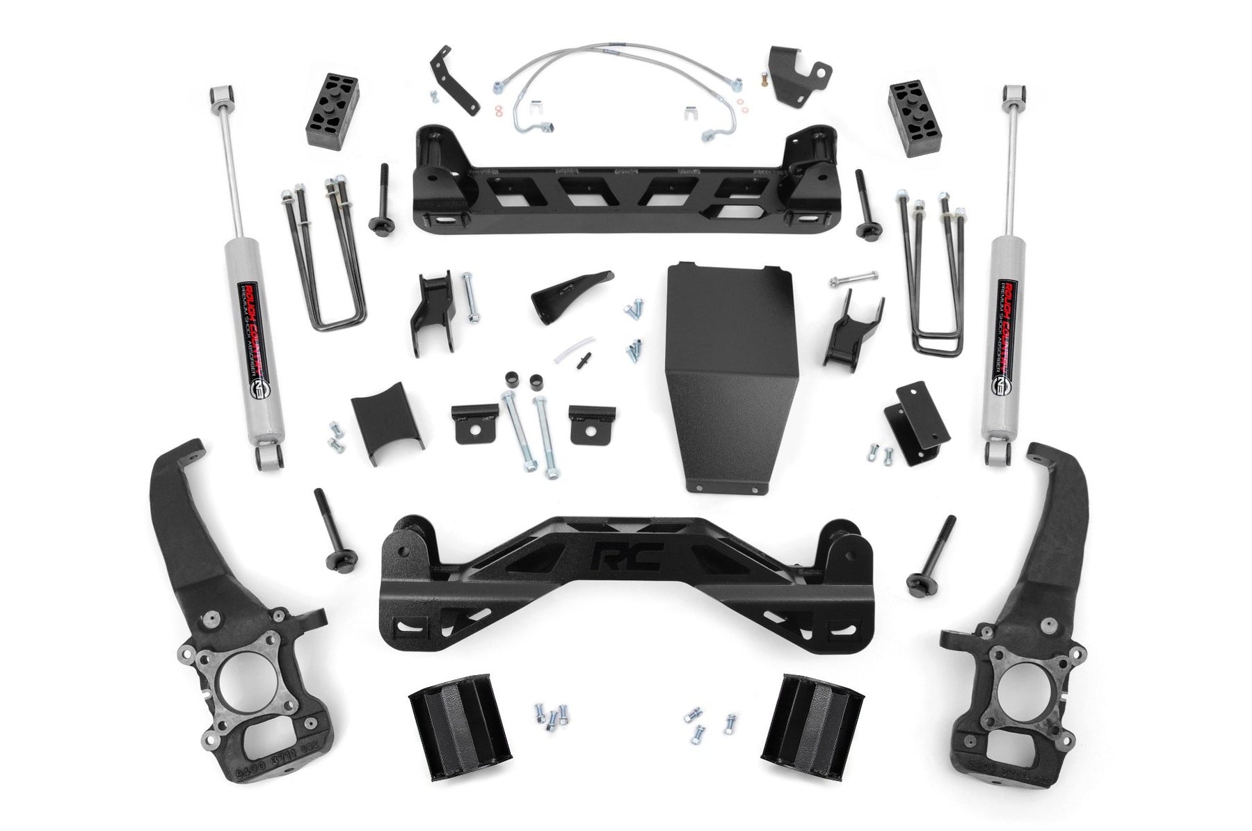 Transform your 2004-2008 Ford F-150 with Rough Country's 6-inch Suspension Lift, giving it an aggressive new look and boosting off-road performance like never before. This all-inclusive kit is engineered to elevate your Ford, providing the perfect balance of strength and style on any trail.Achieve Enhanced Ride Height and Stability: With durable lifted knuckles and strut spacers, you'll gain the ride height needed to run up to 35-inch tires with proper wheel backspacing, all while maintaining track width consistency for improved handling and stability.Upgrade Your Vehicle's Performance: This kit includes differential drop brackets, sway-bar drop brackets, and brake line brackets, ensuring all components stay at optimal angles for a factory-like ride. The 1/4-inch thick plate steel front and rear crossmembers enhance your truck's strength and give it a bold, stylish appearance.Unmatched Off-Road Comfort: Rough Country's premium N3 shocks provide the ideal blend of off-road control and on-road comfort, featuring 10-stage variable high-pressure Nitrogen-charged shocks, an 18mm spring-loaded piston rod, and a 54mm shock body for faster cooling and better performance.Enjoy Peace of Mind: Backed by Rough Country's Limited Lifetime Replacement Warranty, you can hit the trails with confidence, knowing that your investment is covered for the long haul.