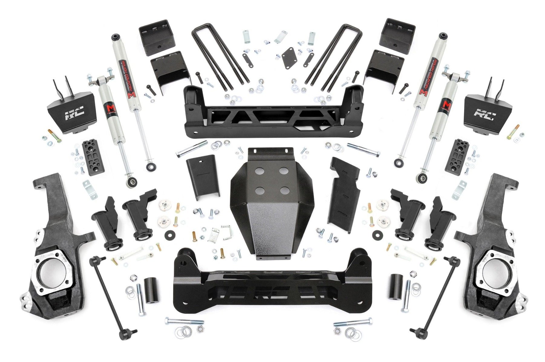 Ultimate Upgrade. Give your GM 2500HD/3500HD an unbeatable stance and better ride quality with Rough Country's 5-inch Lift Kit with Torsion Drop. This kit is a unique offering of suspension lifts, delivering the desired torsion drop look and ride you want while still offering unmatched ground clearance. The Torsion Drop brackets are designed to ensure that your vehicle's track width is not widened and allows you to maintain the factory feel of handling corners and turns. So take your everyday ride and make it one of a kind with our 5-inch Lift Kit with Torsion Drop!Premium Construction. This 5-Inch rugged lift kit is made of heavy-duty laser-cut steel components, powder-coated for a long-lasting finish. It includes replacement knuckles, 1/4" thick steel cross members for the front and rear, fabricated lift blocks, and 1/4" thick Torsion Drop Bar Brackets. You also get the option to configure with multiple shock options that we offer. This allows you to choose the shock series that best fits your needs! Ranging from our nitrogen-charged N3 shocks, to V2 monotube shocks, or our high-performance Vertex adjustable shocks, the power to choose is in your hands. This setup will give you a level stance and the ride height you need to run those larger tires with ease.Installation and Warranty. This kit is packed with all hardware needed for installation and includes full sway bar links, a durable, thick Skid Plate, and brake line relocation brackets. Although some minor cutting and drilling are required, there is no drilling or modifying of the differential, and no drivetrain or exhaust modifications are required. Rough Country's products are backed with a limited lifetime replacement warranty. This means that you have the security of knowing that Rough Country's products will work as they should, even after years of use.