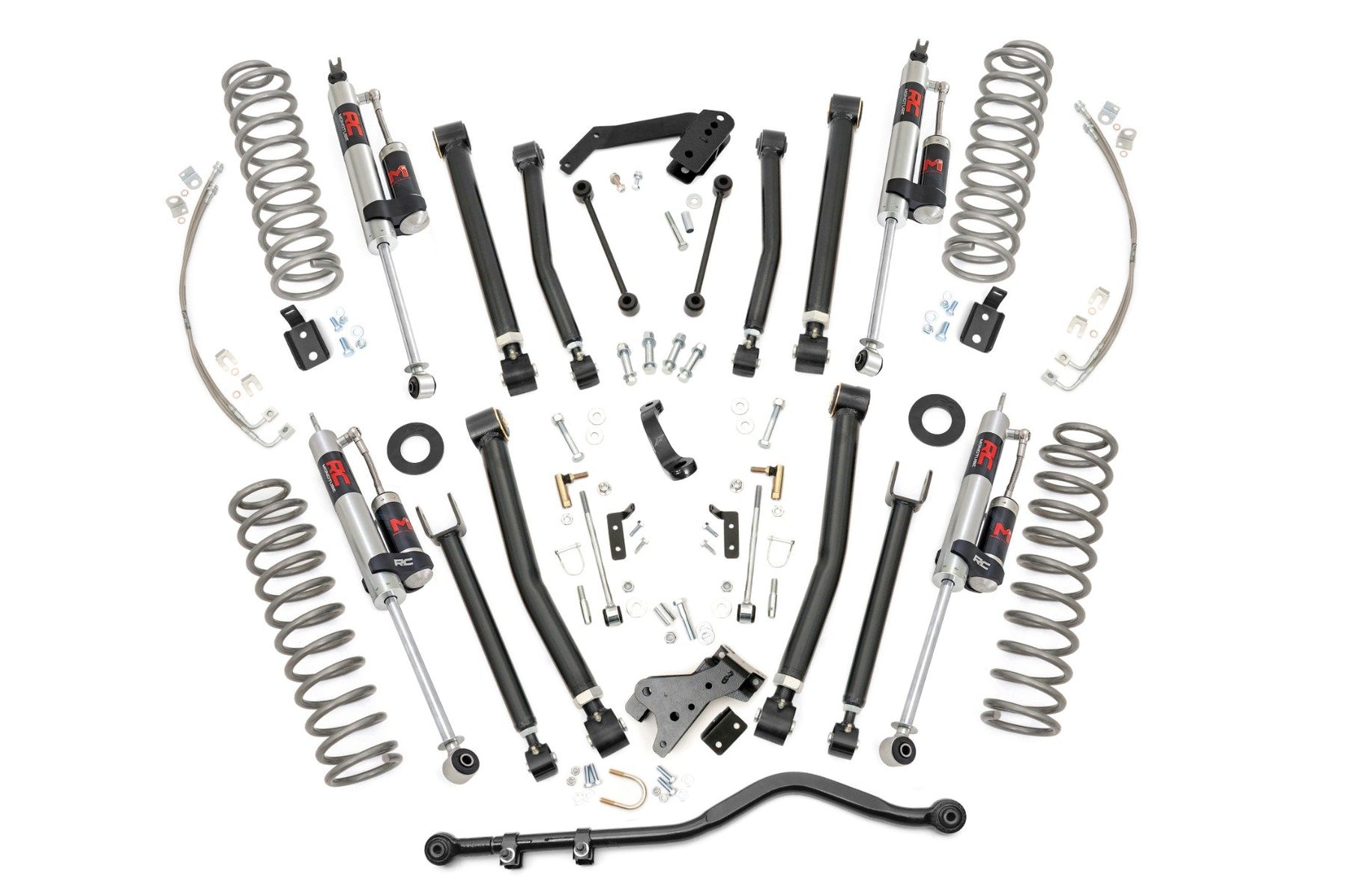Total Transformation for Your Jeep: Elevate your ride with Rough Country's 6in X-Series Suspension Lift, a complete kit designed to deliver aggressive style and unbeatable off-road performance.Precision Suspension Tuning: This all-inclusive kit features front and rear upper and lower adjustable control arms with a high-clearance design, allowing you to dial in the perfect ride height and suspension setup. Lifted coil springs paired with coil correction plates optimize spring angles for superior vibration dampening on any terrain.Unmatched Strength and Adjustability: For the toughest trails, the forged solid steel adjustable track bar provides exceptional durability and axle centering. Weighing 16 pounds, this heavy-duty component installs easily and adjusts on-vehicle for precise alignment.Customizable Shock Performance: Comes standard with Rough Country's N3 Series shocks, featuring 10-stage variable valving and a high-pressure nitrogen charge for smooth highway comfort and excellent off-road control. For drivers seeking maximum performance, upgrade to premium M1R monotube shocks with faster heat dissipation, enhanced damping, and superior off-road handling.