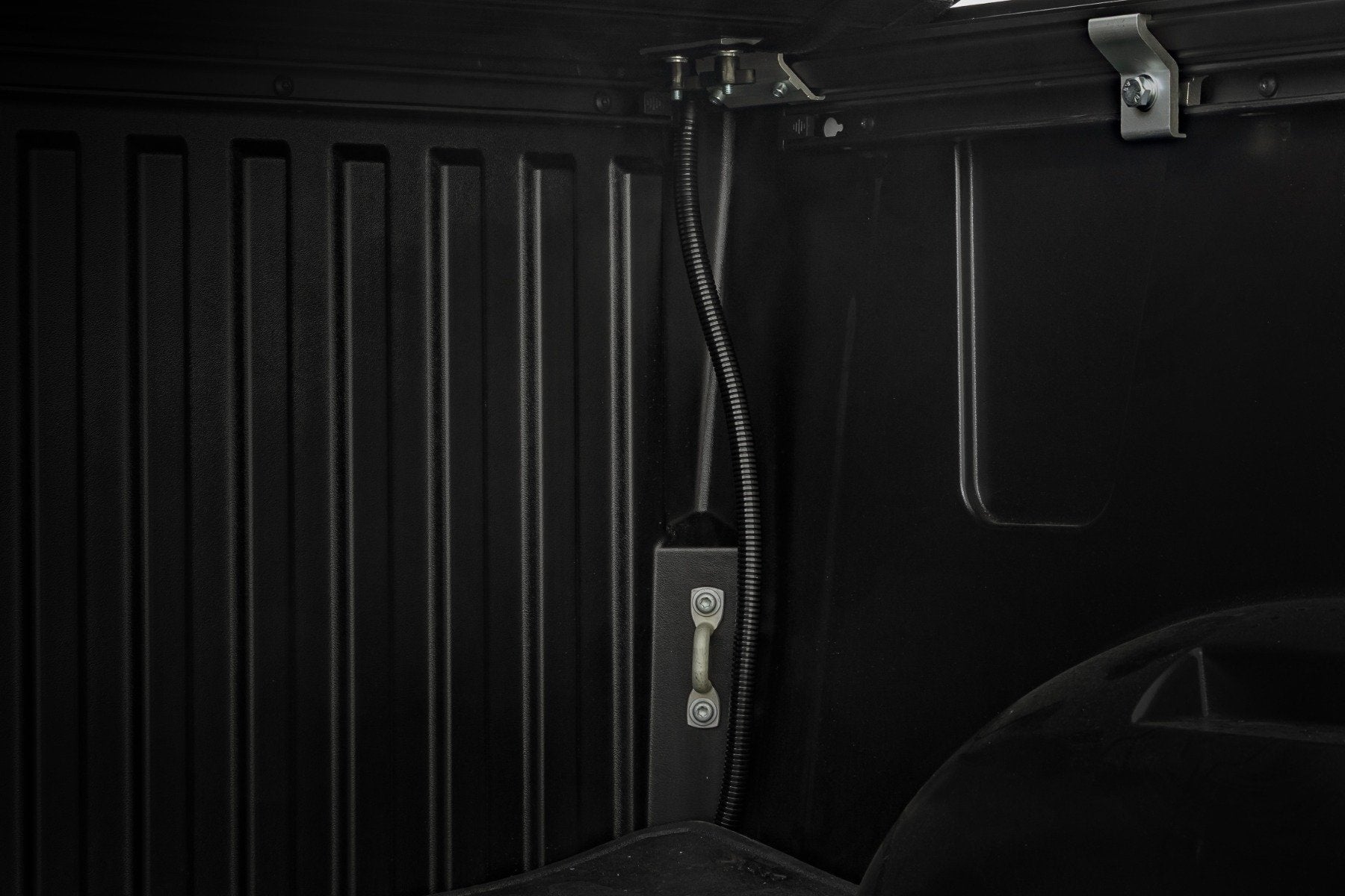 Your truck bed is built for hauling, but without a cover, your cargo is left vulnerable to the elements and unwanted attention. Rough Country's Hard Roll-Up Bed Cover delivers the perfect balance of security, durability, and style, keeping your gear safe, dry, and out of sight while transforming your truck with a sleek, modern look.Sleek Flush, Low-Profile Design: Finished in a stylish matte black with durable aluminum slats, this cover adds a clean, streamlined appearance that complements any truck.Convenient Roll-Up Access: Designed for everyday versatility, the roll-up design allows full bed access in seconds. A single cable pull quickly releases the latch, while the auto-latching closure locks everything back down securely, hassle-free.Built Strong, Built to Last: Supporting up to 600lbs of evenly distributed weight, this heavy-duty cover stands up to tough jobs. Its black powder-coated aluminum frame resists corrosion and harsh weather, ensuring long-lasting durability you can rely on.Smart, Secure Mounting System: A dependable track and rail system with included drain tubes channels water away efficiently, helping keep your cargo dry while ensuring a snug, weather-resistant fit.Safety and Peace of Mind: Nylon safety straps with quick-release clips keep the cover secure when rolled, while a dependable 5-year warranty backs your investment for years of worry-free use.No-Drill, Hassle-Free Install: With all tools included, installation and removal are simple and straightforward, no drilling required.Upgrade your truck with a bed cover that works as hard as you do. Strong, stylish, and built for convenience, the Rough Country Hard Roll-Up Bed Cover is the ultimate way to protect your gear while keeping your truck looking sharp.