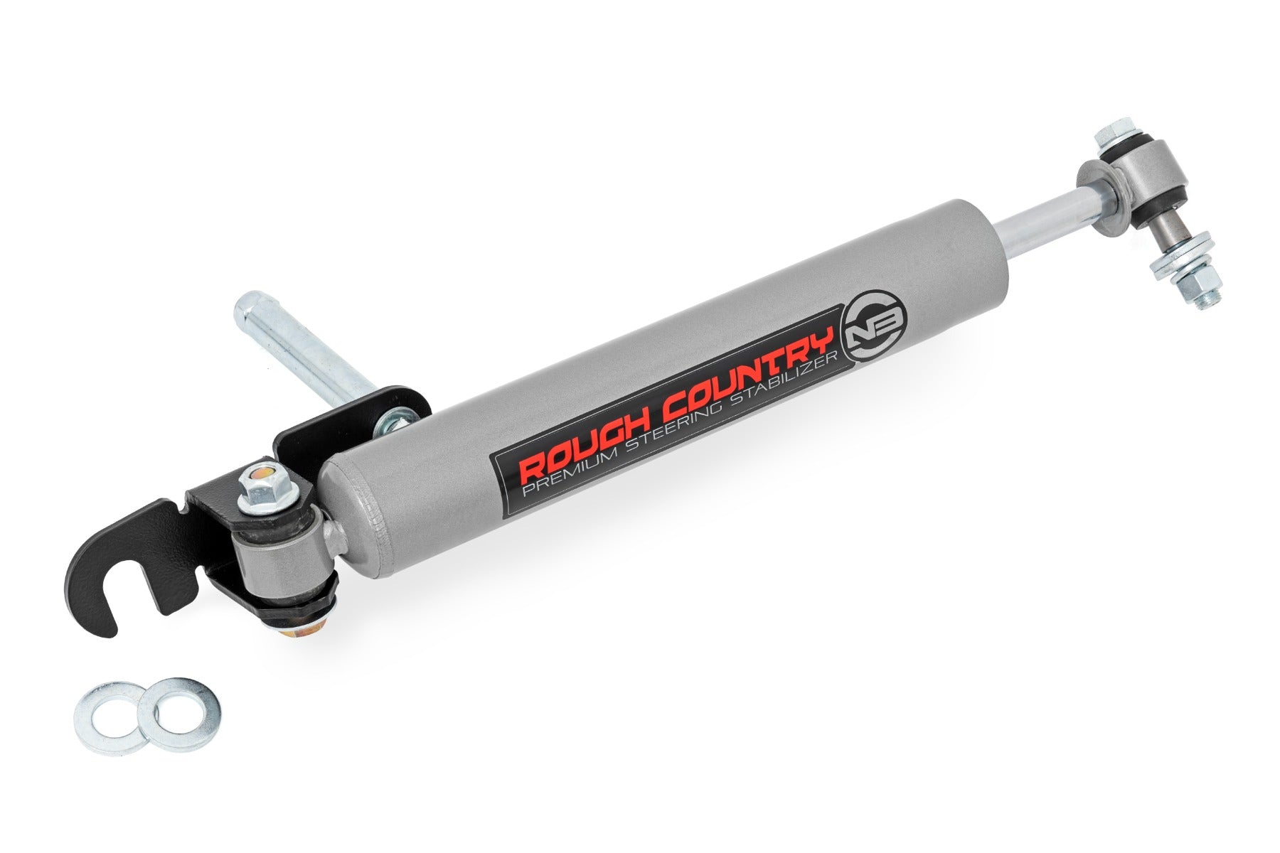 Take Control of Every Turn: Rough Country's N3 Steering Stabilizer Kit is engineered to eliminate bump steer, front-end shimmy, and steering vibration caused by rough roads or oversized tires. Whether you're hitting the trail or the pavement, it delivers a smoother, more predictable ride by dampening harsh feedback through the steering wheel.Fix Common Steering Issues: If your vehicle pulls to one side, feels loose after hitting a bump, or suffers from a shaky steering wheel - this stabilizer helps correct those problems. It absorbs sudden impacts that can throw off your handling and alignment, especially in lifted applications.Protect Your Steering System: Rough Country's stabilizer helps reduce wear and tear on key components like tie rods, ball joints, and tires. It's a must-have for vehicles running larger wheels or off-road setups, helping preserve performance and extend component life.Bolt-On Upgrade with Big Benefits: With a 100% bolt-on design, installation is fast and hassle-free. It's one of the easiest ways to improve handling, reduce road feedback, and reinforce the reliability of your steering system - backed by the trusted Rough Country name.