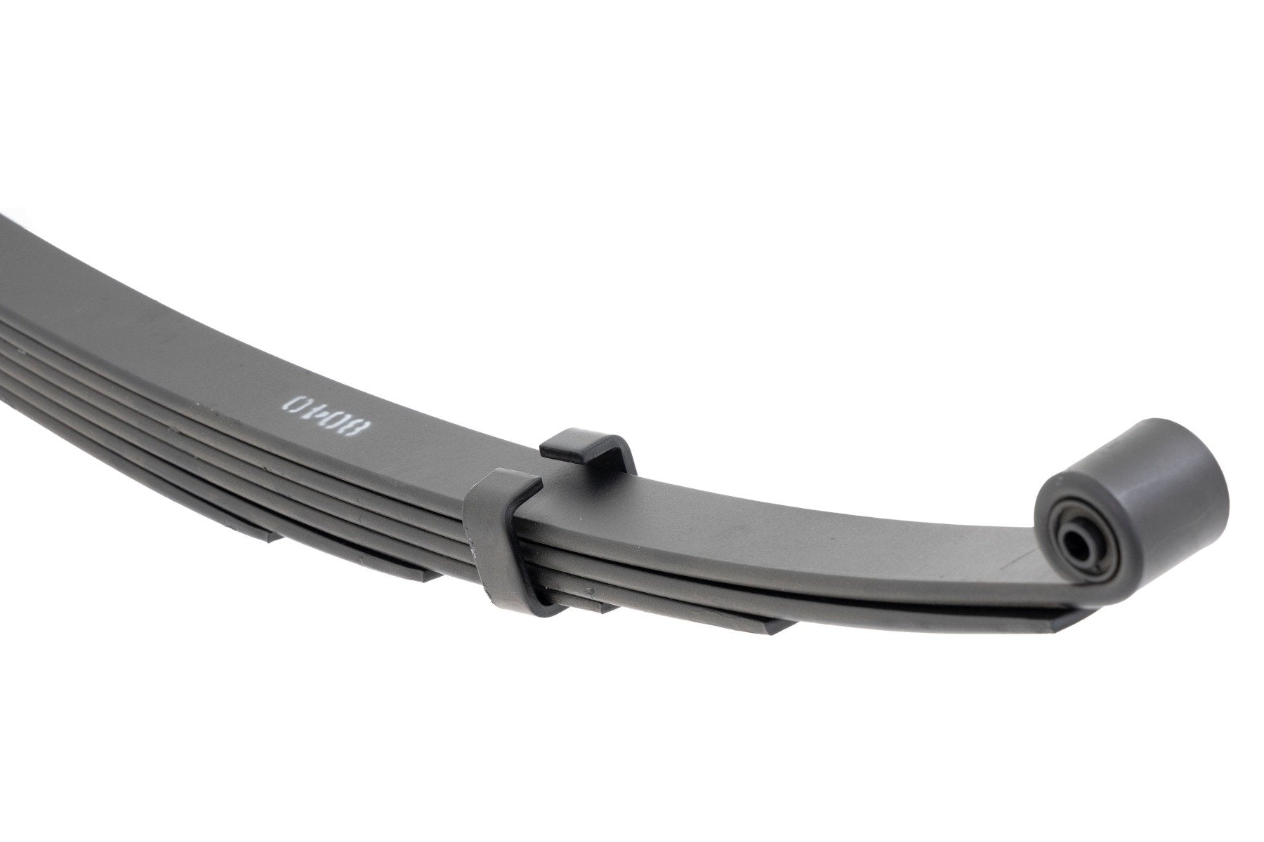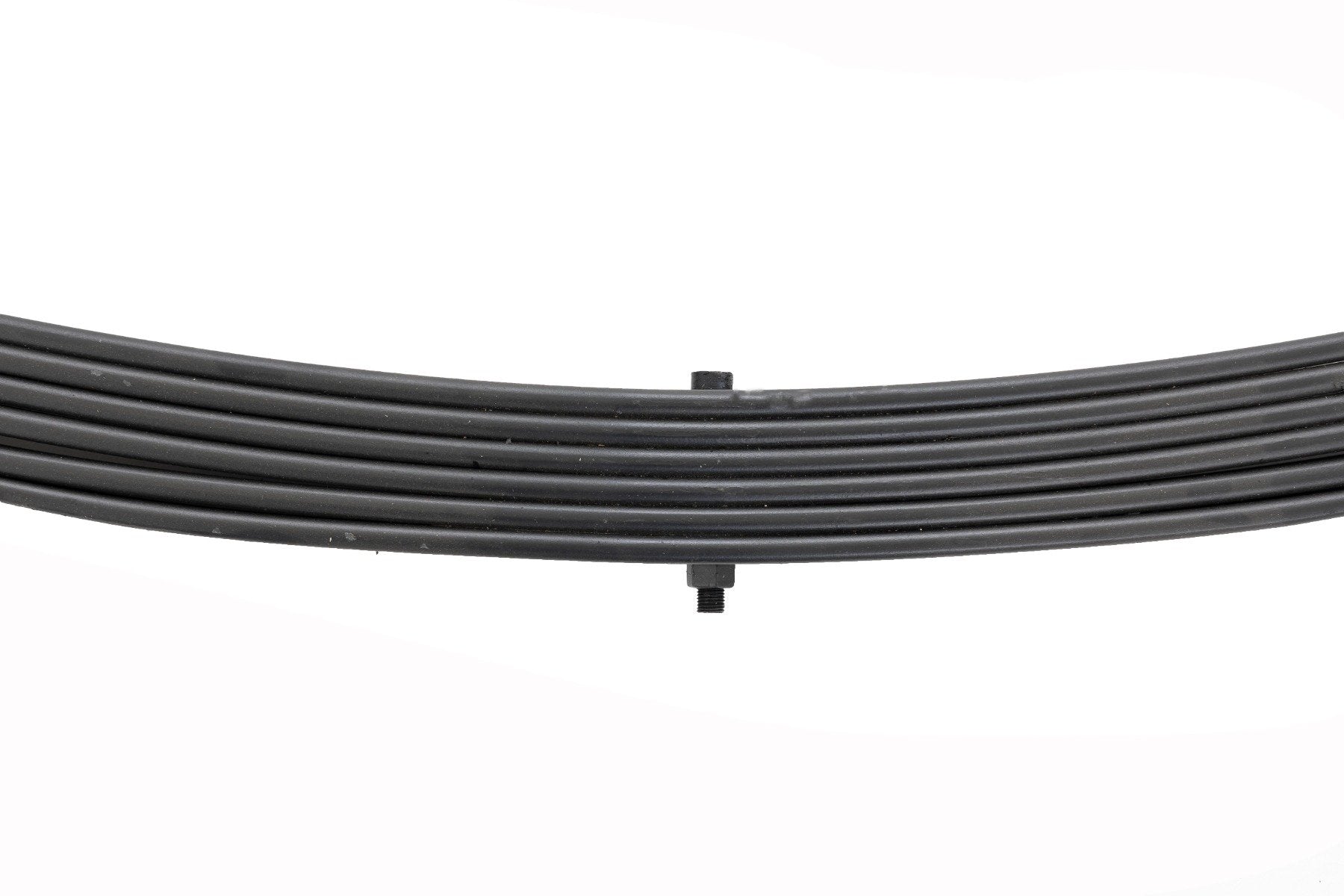 Durable and Off-Road Ready. Rough Country's Replacement Leaf Springs are designed to tackle any terrain that they are faced with. Featuring a multi-leaf design and spring pads this reduces the friction and maximizes comfort. Each leaf pack utilizes tapered leaves for improved flexibility at their ends. \