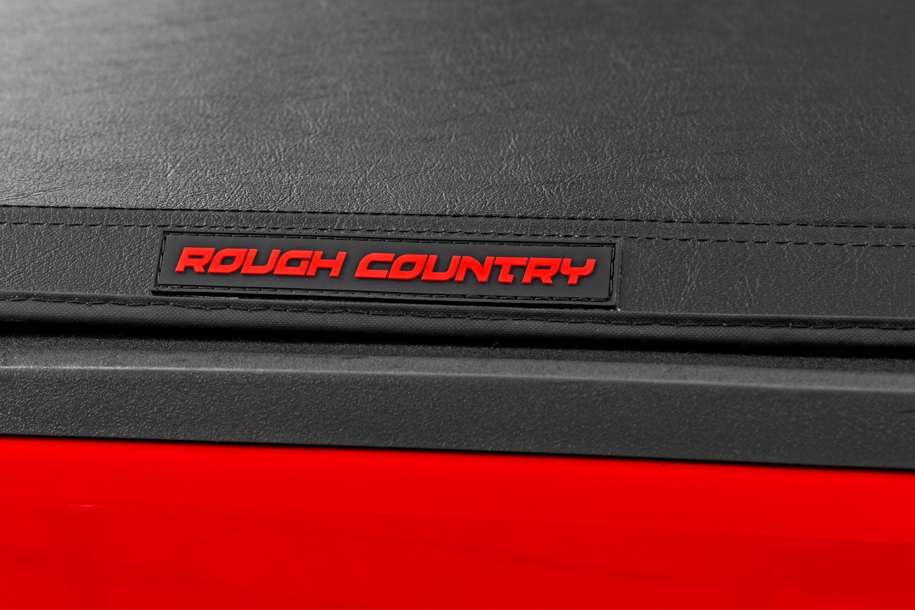 Want to streamline your ride and protect your gear from the elements? Look no further than Rough Country's Tri-Fold Vinyl Tonneau Cover! With its durable construction and easy installation, it's the perfect addition to any truck.Tri-fold Design for Style and Efficiency: This tonneau cover folds up in three sections for easy access to your bed whenever you need it. Need to haul a large item? Simply fold back a panel. When everything's loaded up, unfold it completely for a sleek look that can also improve your gas mileage.Security & Weatherproof Seal: Sitting firmly on the bed railing and featuring a heavy-duty vinyl construction with an all-weather seal, our tri-fold cover keeps your gear safe from prying eyes and the elements.Durable Construction: Crafted with a lightweight 6061 aluminum frame, this cover is tough enough to handle whatever rough terrain you throw at it while keeping your gear safe and sound.Effortless Installation: Our cover comes completely assembled in the box, no loose parts, no tools required. Thanks to our patented quick clamp system, you'll be ready to hit the road in no time.Protect your gear and streamline your ride with Rough Country's Tri-Fold Vinyl Tonneau Cover!