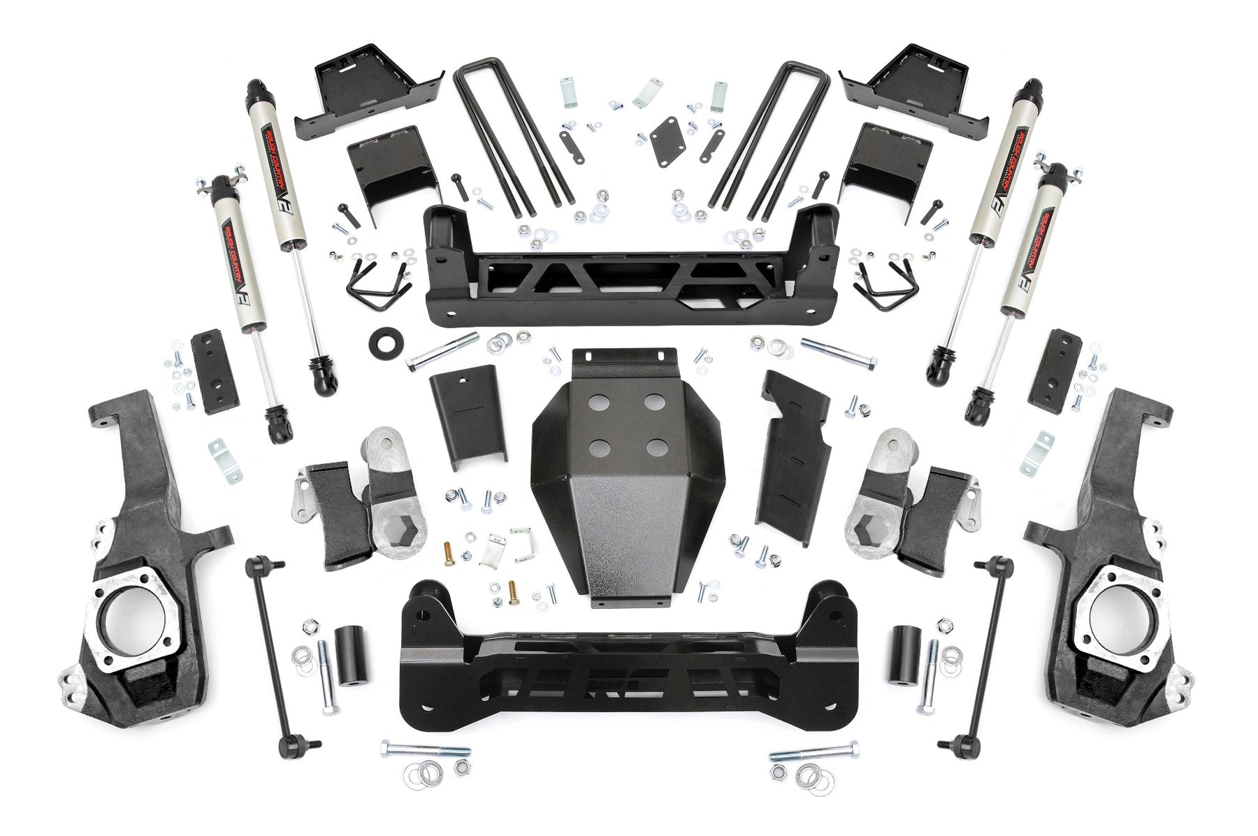 Transform Your HD With Confidence: Upgrade your fourth or fifth-generation Chevy/GMC 2500HD/3500HD with Rough Country's 7-Inch Non-Torsion Drop Suspension Lift Kit. This high-clearance system adds serious attitude and off-road capability to your truck, delivering the height you need to run 37-inch tires, all while maintaining a clean, integrated factory look underneath thanks to its non-torsion drop design.Engineered for a Sleek, Factory-Fit Appearance: Unlike traditional kits that leave torsion bars hanging low and exposed, Rough Country's innovative non-torsion drop design keeps everything tucked up and streamlined. You'll enjoy unmatched ground clearance and a sharp, OEM-style appearance that complements the aggressive stance of your HD truck.Built for Strength and Precision: The kit includes rugged, laser-cut front and rear crossmembers crafted from durable steel for a precise, bolt-on fit. The signature "RC" logo adds a bold touch up front, while the heavy-duty differential skid plate offers extra protection during off-road adventures. Lifted knuckles, rear anti-wrap blocks, and a range of premium shock options, like Rough Country's nitrogen-charged N3s or the high-performance Vertex reservoir, ensure you get the ride feel and handling you demand.Ride Quality You Can Rely On: This lift system retains factory ride comfort and control, keeps axle geometry true to spec, and preserves OEM track width. No drivetrain modifications or differential drilling required, just a clean install and predictable performance, mile after mile.Backed by Rough Country's Limited Lifetime Replacement Guarantee: Drive with peace of mind knowing your lift kit is covered for the long haul.
