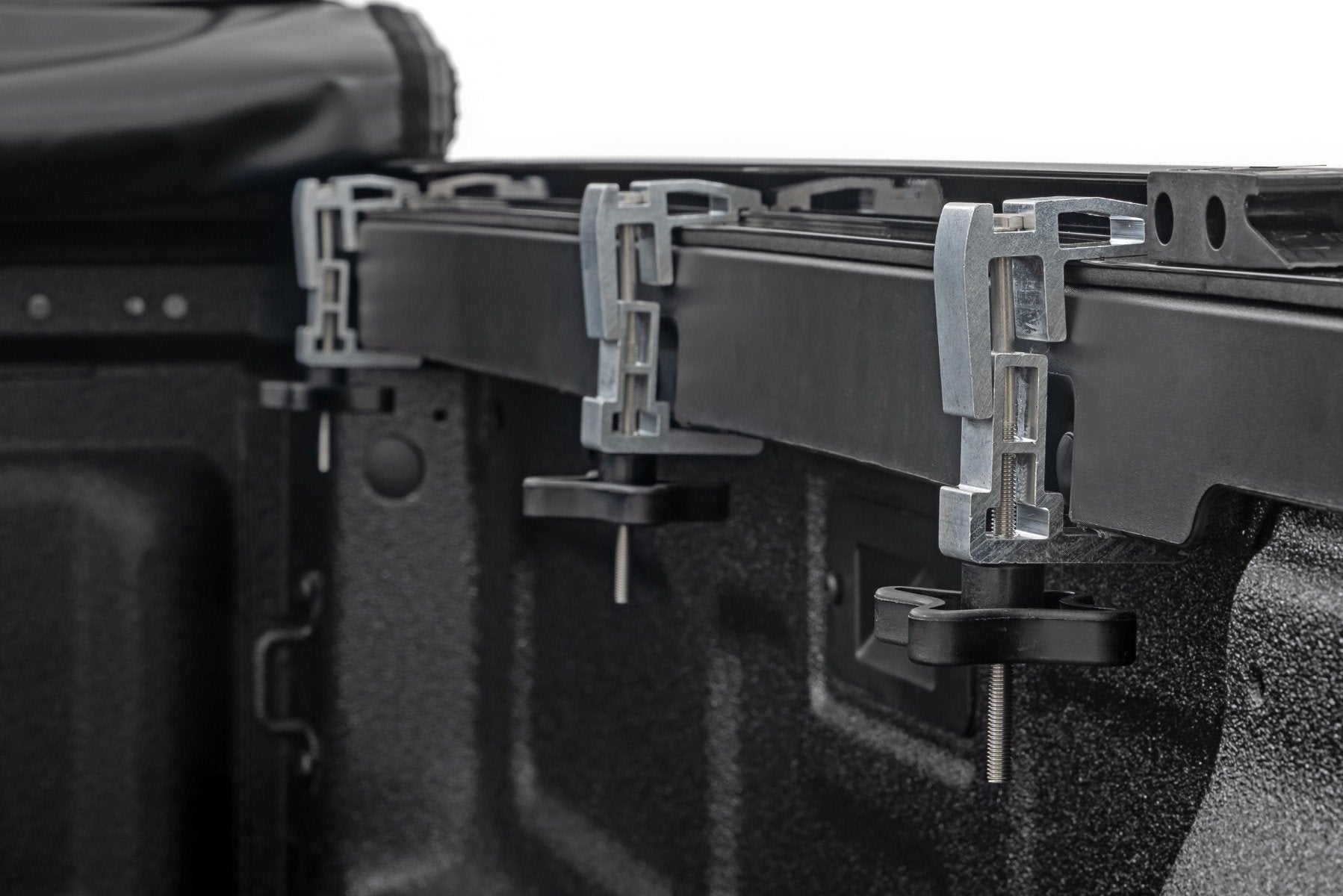 All-Weather Bed Protection: Rough Country's Soft Roll-Up Bed Cover delivers reliable protection against the elements while preserving full bed functionality. Constructed from high-quality, marine-grade vinyl with a sleek matte black finish, this durable cover features heavy-duty hook-and-loop side seals and tight front and rear barriers to shield your cargo from rain, dust, and debris.Streamlined Low-Profile Design: Sitting just 1-1/8" above the bed, this top-mount cover blends seamlessly with your truck's lines for a clean, stylish look. The corrosion-resistant, black powder-coated aluminum frame offers long-lasting strength without sacrificing style or aerodynamics.Fast and Easy Bed Access: The roll-up design and spring-latch closure system make opening and closing the cover a breeze. A single cable pull lets you release the latch quickly, giving you fast access to your full bed whenever you need it. Whether you're hauling gear or unloading tools, convenience comes standard.Effortless Installation: No drilling required - this cover installs in just 20 minutes using the included bracket system and tools. It mounts securely to your factory bed rails for a snug, hassle-free fit you can count on.Protected by a 5-Year Warranty: Rough Country backs this Soft Roll-Up Bed Cover with a 5-Year Replacement Warranty, protecting against structural and workmanship defects so you can hit the road with total confidence.