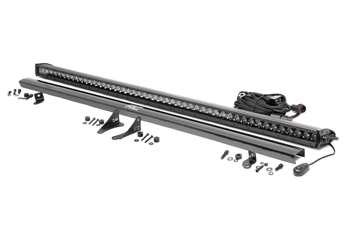 COMMAND THE DARK with Rough CountryΓÇÖs 50in LED Hood Kit! This awesome, easy-to-install LED upgrade gives your Jeep JL a menacing look and incredible off-road illumination.This kit features Rough CountryΓÇÖs 50in, straight, single-row LED light bar for a sleek look that leaves plenty of visibility while blending in perfectly with the JLΓÇÖs aggressive front-end design. This setup provides a staggering 19,200 lumens and 240 watts of forward-facing LED power and is available in your choice of Chrome-Series or Black-Series LED for the style that suits your build the best! Each Rough Country LED light bar is IP67 Waterproof and includes a premium, braided wiring harness with in-line fuse and on/off switch!This easy-to-install kit features a 100% bolt-on installation procedure, with no need for cutting or drilling on your brand new Jeep, and does not interfere with the windshield washer nozzle or spray pattern! Includes Rough CountryΓÇÖs 3-year LED warranty and lifetime mounting bracket warranty!