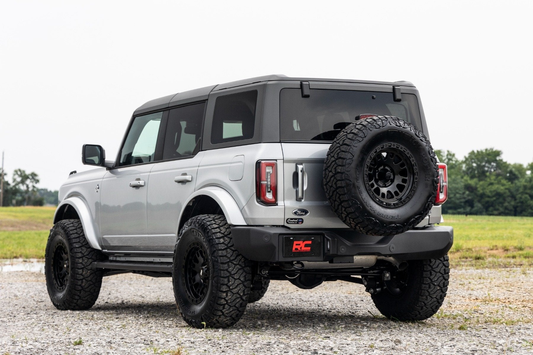 Improved Ground Clearance and Ride Quality: The Ford Bronco is back and built for more. Rough Country's 2-Inch Suspension Lift Kit gives your Bronco the clearance and confidence it deserves. This kit eliminates the factory nose-down stance, offering a bold, level look while delivering increased ground clearance for larger tires and better off-road capability, all without compromising ride comfort.Premium Performance Options: Tailor your suspension to match your driving needs. Choose from Rough Country's N3 Loaded Struts, high-performance M1 Monotube Struts, or upgraded M1R Monotube Reservoir Struts for enhanced damping and control in any terrain. No matter the choice, each option maintains a smooth factory-like ride while enhancing your Bronco's off-road readiness.Engineered for Strength and Simplicity: Rough Country's innovative 2-Inch Lift Kit is designed for real-world use, on and off the trail. This system provides ample clearance to run 35" tires with no additional trimming or modifications required. Each component is built with durability in mind, ensuring long-lasting performance you can count on.Effortless Installation: Enjoy a hassle-free upgrade with a 100% bolt-on design. With an estimated install time of just 2-3 hours, this kit can be installed at home using basic tools, no cutting, welding, or guesswork required.Backed by a Three-Year Warranty: Rough Country backs this lift kit with a three-year warranty against structural and workmanship defects. Drive with confidence knowing your suspension is built to last.