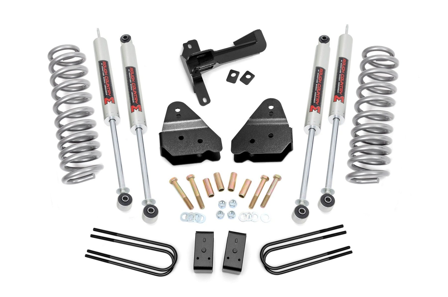 Superior Looks. Give your fourth generation Ford Super Duty an impressive upgrade, front to back with Rough CountryΓÇÖs 3" Suspension Lift Kit! This easy-to-install lift kit raises the front of your vehicle to be equal height with the rear for a leveled, better-than-stock look that gives an improved ride height and more aggressive appearance.\