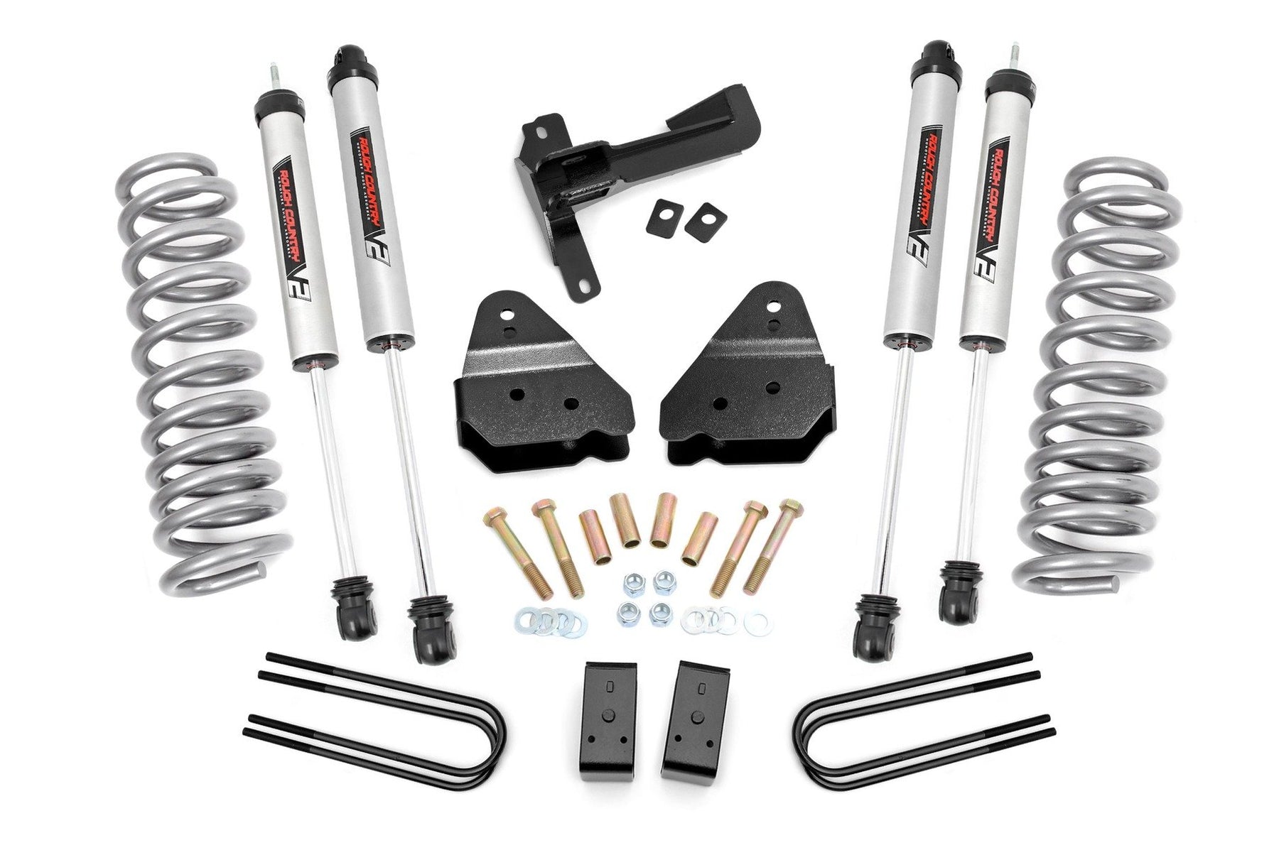 Superior Looks. Give your fourth generation Ford Super Duty an impressive upgrade, front to back with Rough CountryΓÇÖs 3" Suspension Lift Kit! This easy-to-install lift kit raises the front of your vehicle to be equal height with the rear for a leveled, better-than-stock look that gives an improved ride height and more aggressive appearance.\