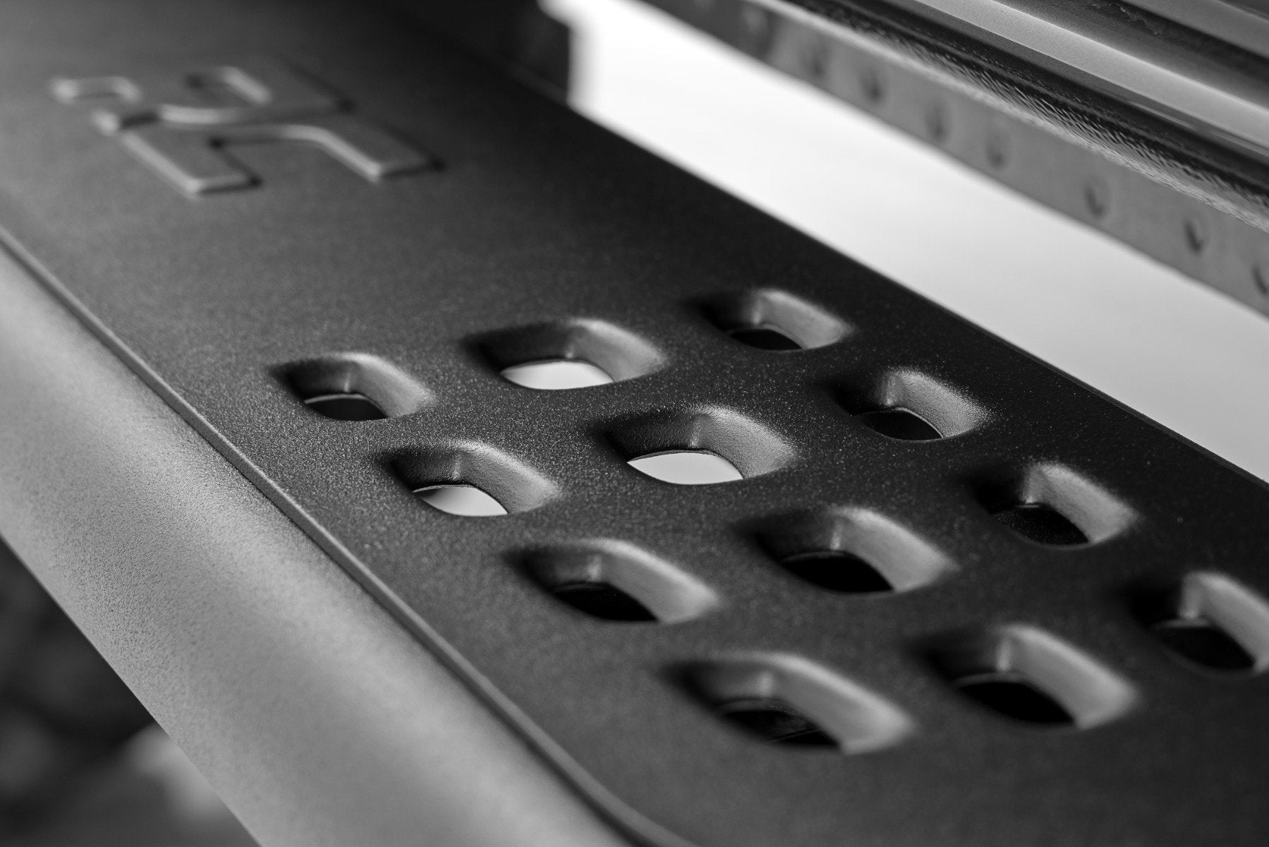 Rough Country's OV2 running board is the perfect combination of off-road style and function. These heavy-duty steel steps feature a rugged tubular construction for strength and rocker panel protection while still boasting a large area for secure footing. With rugged construction and easy installation, it's time to elevate your Bronco's performance and style.Rugged Durability: Made from durable steel and wrapped with a tubular side wall, the OV2 Running Boards offer reliable protection against rocks and debris the trail throws your way. The 1 inch steel tubing provides added body protection, ensuring your Bronco stays in top condition no matter where you go.Ample Stepping Area: With a generous 6 3/4-inch-wide stepping area, these running boards offer plenty of foot room, making it easy to enter and exit your Bronco, even with mud-caked boots.Corrosion Resistance: Finished with a durable powder coat, our running boards are built to withstand the elements and resist corrosion, so they'll look great for years to come.Easy Installation: Say goodbye to complicated installations. The OV2 Running Boards feature a no-drill installation process, allowing you to equip your Bronco for off-road adventures without the hassle.Peace of Mind: Rough Country stands behind the OV2 Running Boards with a limited lifetime warranty, so you can trust that our boards are a reliable investment for your Bronco.Whether you're navigating rocky trails or cruising through mud and sand, these running boards are the ultimate off-road companion, providing a sure step and unmatched protection for your rig. »